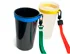 O corpo do produto possui suporte para a colocação de uma argola metálica ou fita, facilitando o transporte do copo de forma segura e prática.